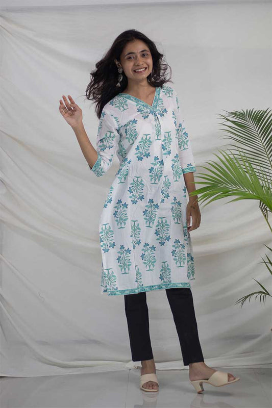 White Printed Cotton Kurti