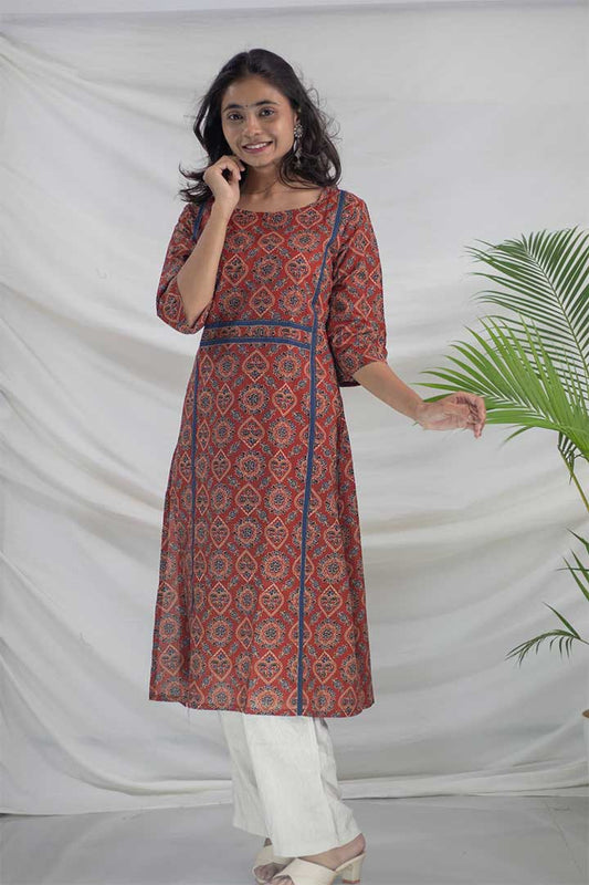 Maroon Ajrak Printed Cotton Kurti