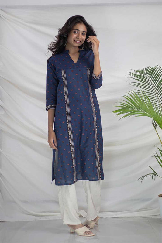 Blue Kamal Print Pocket Cotton Kurti
