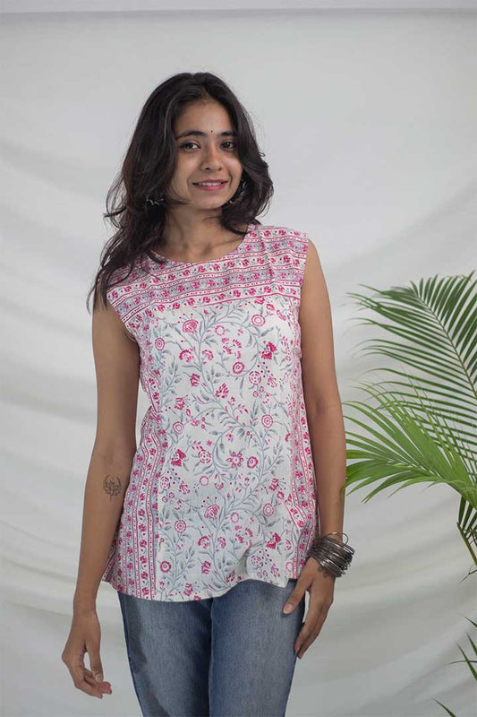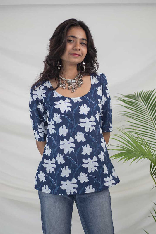 Blue Floral Cotton Top