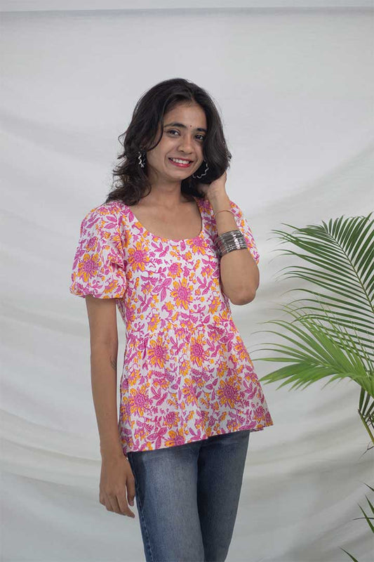 Pink Floral Gather Cotton top