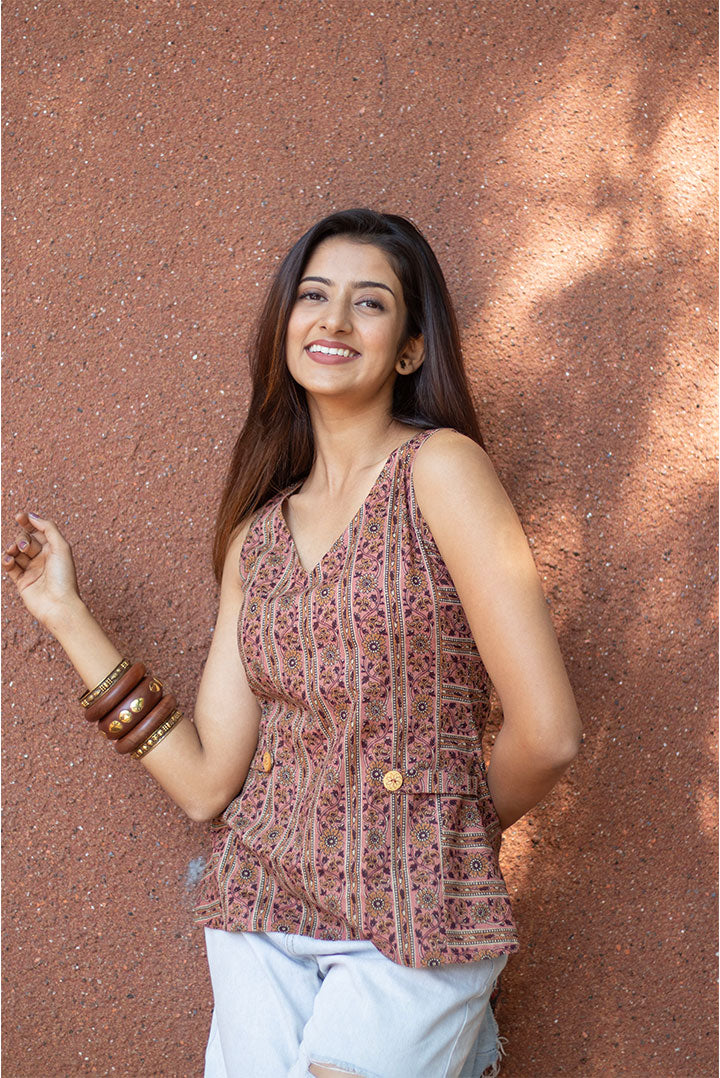 Elevate your everyday wardrobe with this versatile cotton top, crafted from breathable fabric for all-day comfort. The classic v-neck silhouette pairs seamlessly with a refined stripe print, while functional band detailing at the waist—complete with a button accent—adds subtle structure and visual interest. Perfect for layering or wearing solo, this piece transitions effortlessly from casual to polished occasions. Ideal for those seeking quality basics with thoughtful design elements.